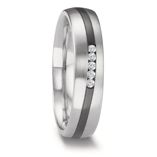 Partnerring Roestvrijstaal, Titanium Diamant 0.05 ct, 5 Steen, w-si