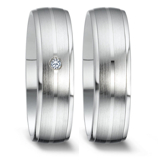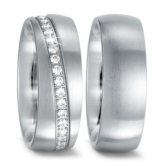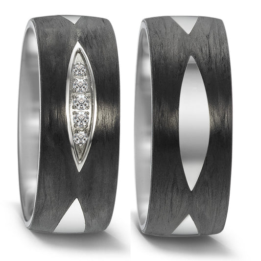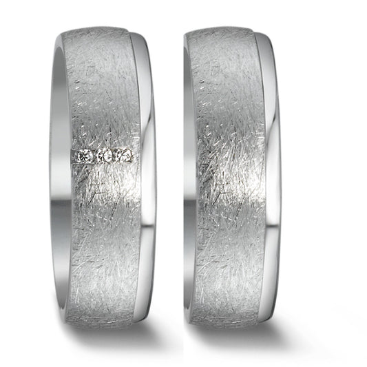 Partnerring Titanium Zirkonia wit, 3 Steen