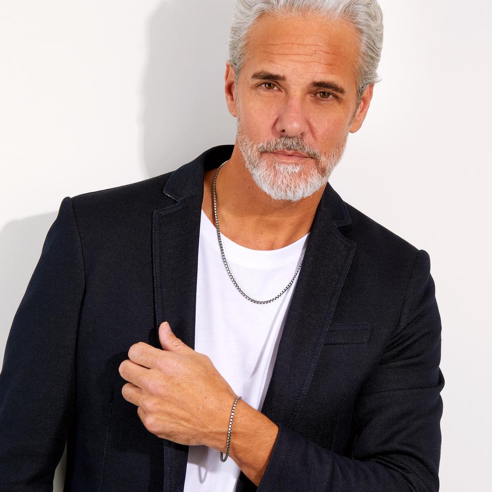 Elegant herenarmband van hoogwaardig zilver met een strak, blokkerig design. Dit tijdloze sieraad combineert robuustheid met stijl en is perfect voor dagelijks gebruik of bijzondere gelegenheden. Voeg een verfijnde touch toe aan je look met dit duurzame, comfortabele armbandje.