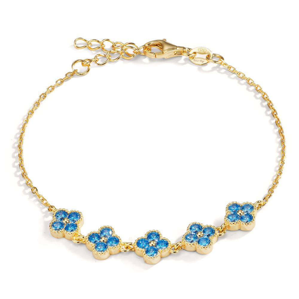 Armband Zilver Zirkonia Lichtblauw, 20 Steen Geel Verguld Bloem 16-19 cm