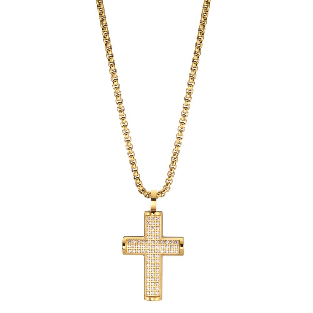 Collier met hanger Roestvrijstaal Zirkonia 75 Steen Geel IP-gecoat Kruis 55 cm