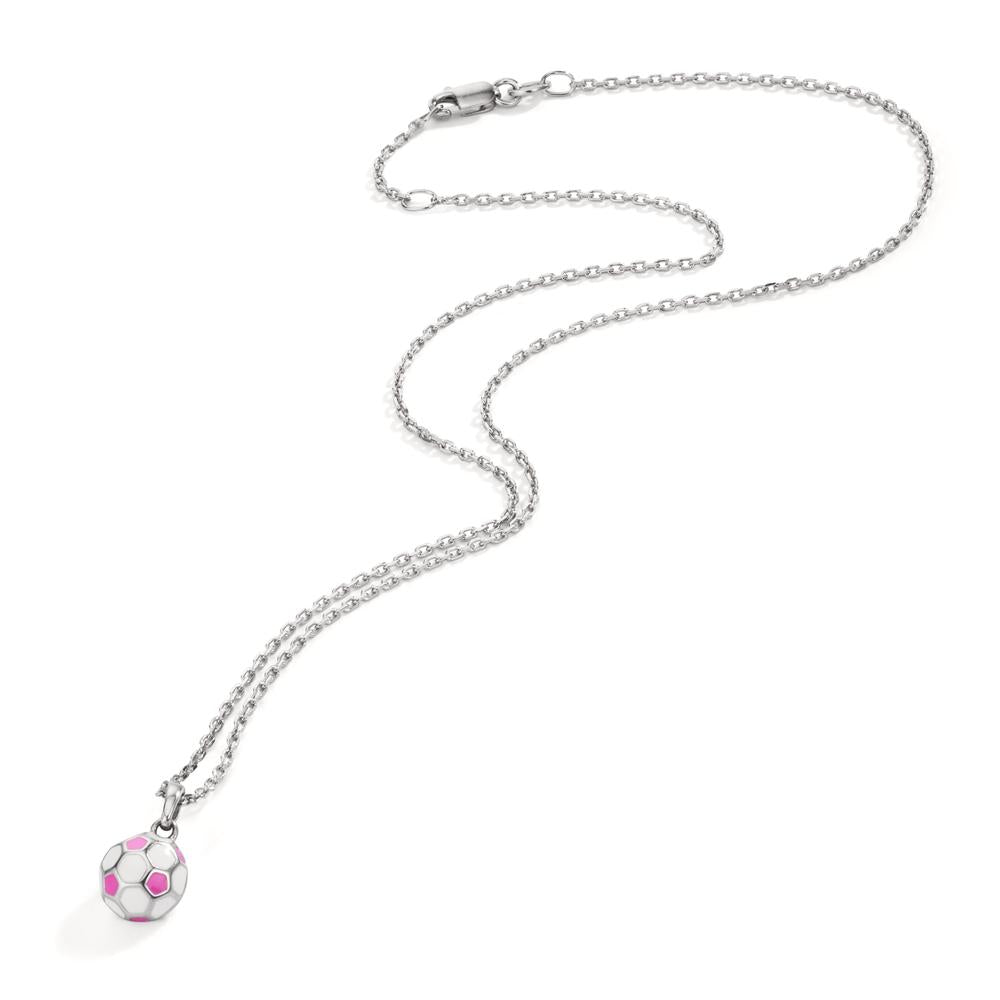 Stijlvolle zilveren meisjesketting met een voetbalvormige hanger in wit en roze. Perfect voor jonge voetballiefhebbers die een speelse en sportieve look willen dragen. Een mooi accessoire voor elke dag of speciale gelegenheden.
