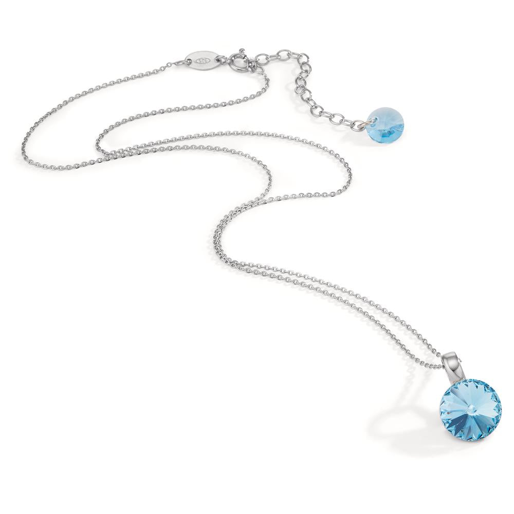 Collier met hanger Zilver Zirkonia aquatisch, 2 Steen Gerhodineerd 43-47 cm Ø12 mm