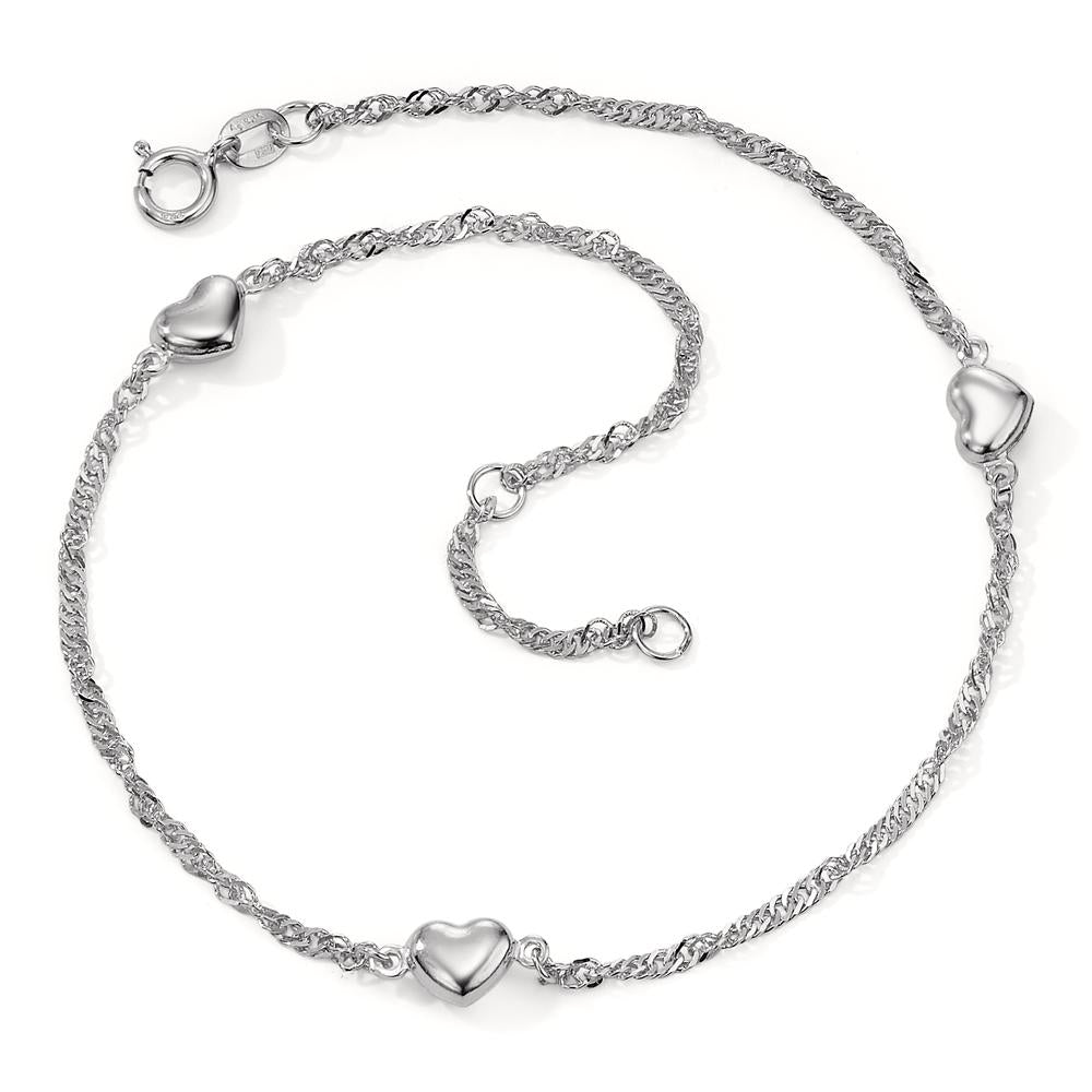 Elegant zilveren enkelbandje voor dames, versierd met drie glanzende hartjes. Dit subtiele en vrouwelijke accessoire is perfect om je zomerlook compleet te maken. Gemaakt van hoogwaardig zilver en voorzien van een stevige sluiting voor comfortabel dragen.