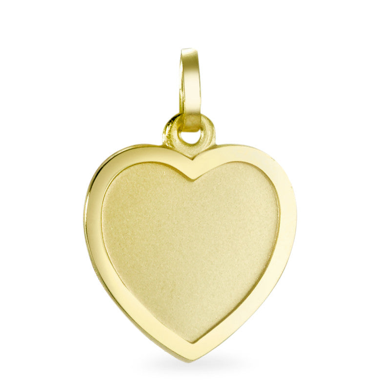 Deze gravurehanger in de vorm van een hart is vervaardigd uit hoogwaardig 18-karaats geelgoud (750). Het elegante, glanzende randontwerp omlijst een gepolijste gravurevlak, perfect voor persoonlijke teksten of initialen. Een tijdloos en stijlvol sieraad voor dagelijks draagplezier of als betekenisvol cadeau.