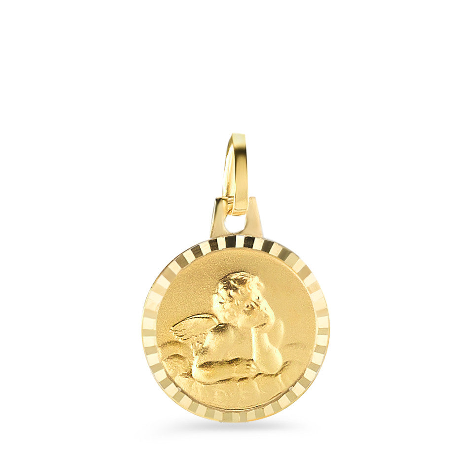 Deze charmante kinderhanger van 375 geelgoud toont een beschermengel die zorgt voor veiligheid en geluk. Het subtiele, ronde ontwerp met fijn gedetailleerde rand maakt het een perfect cadeau voor kinderen, symbool van liefde en bescherming bij elke dag.