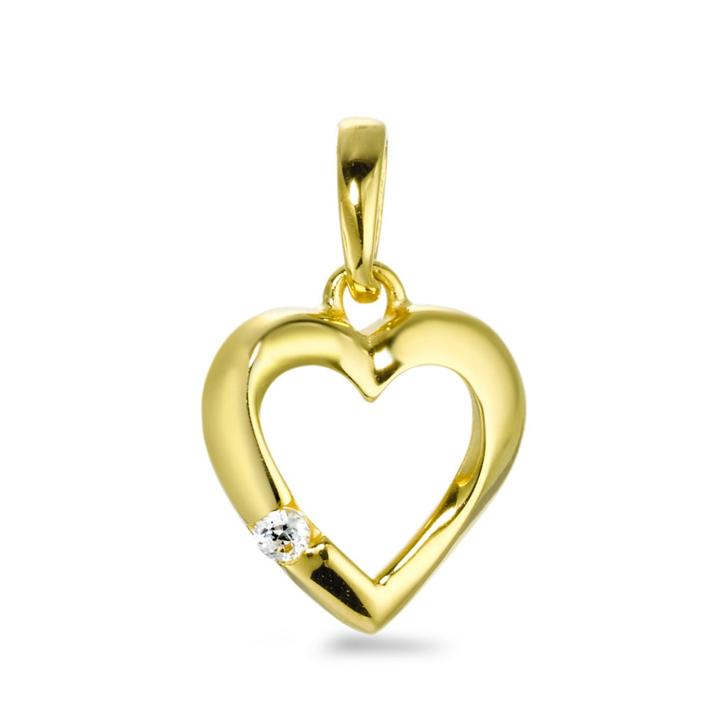 Stijlvolle dameshanger in 375 geelgoud met een elegant hartdesign. Voorzien van een fonkelende zirkonia steentje dat subtiel glinstert. Perfect om elke look een romantische en verfijnde touch te geven. Een tijdloos sieraad voor elke gelegenheid.