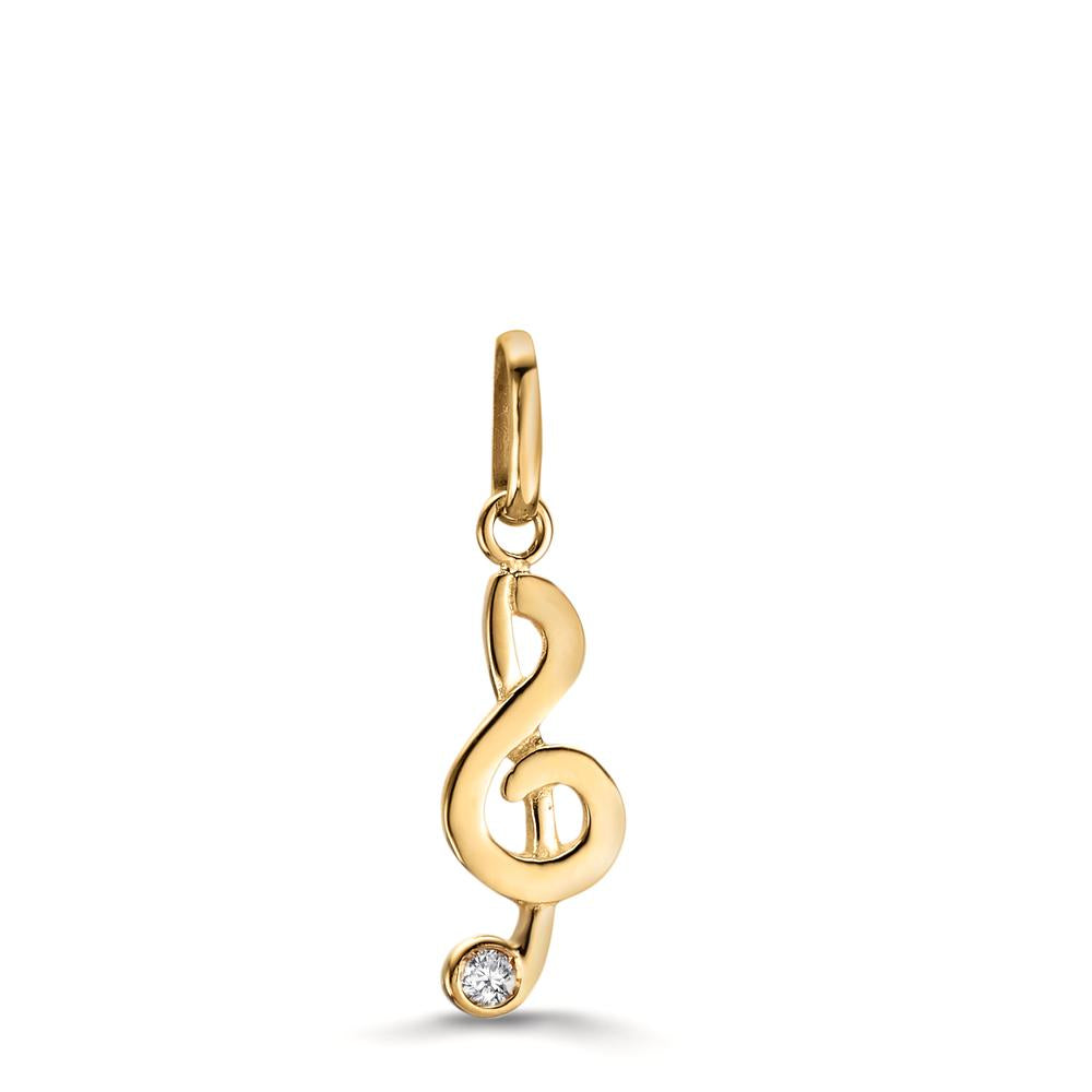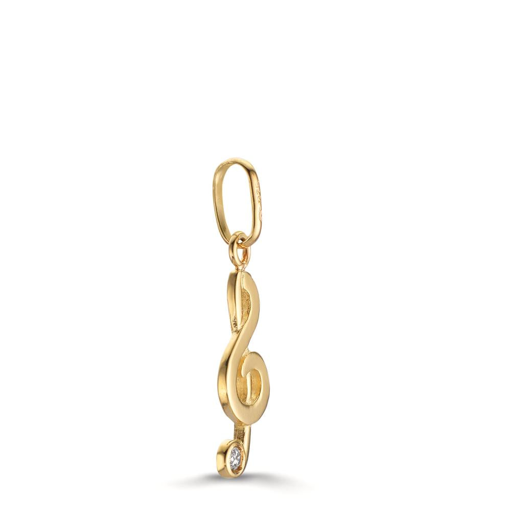 Elegante hanger in 375 geelgoud in de vorm van een G-sleutel, versierd met een sprankelende zirkonia. Perfect voor muziekliefhebbers die een subtiele en stijlvolle accessoire zoeken. Tijdloos design dat elke look compleet maakt.