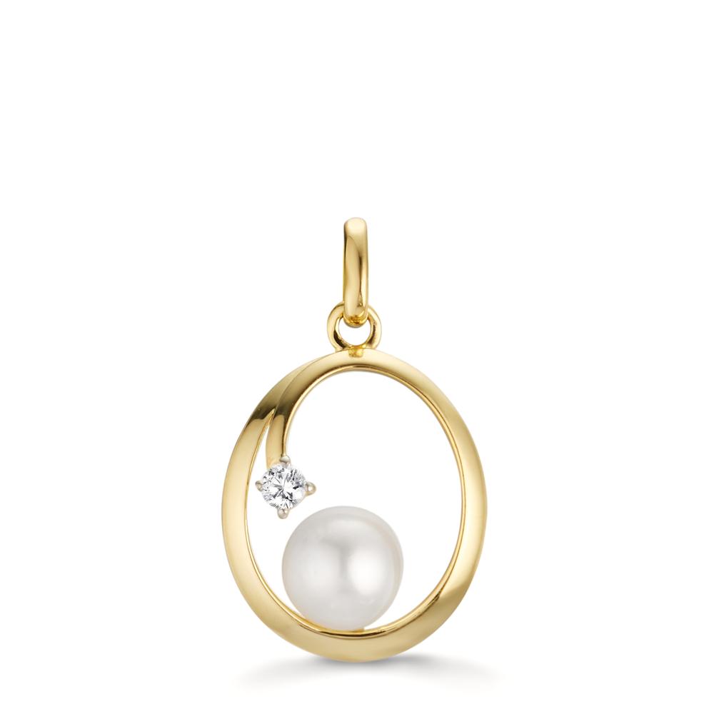 Hanger 375/9K geel goud Zirkonia zoetwater Parel, 5.5 mm