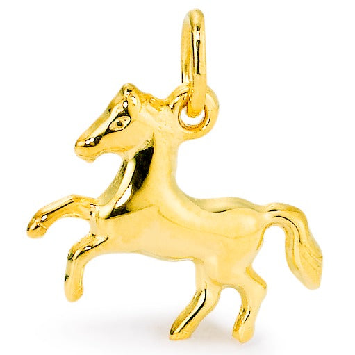 Stoere heren hanger van 750 geelgoud in de vorm van een paard. Dit elegante en temperatuurvaste sieraad straalt kracht en vrijheid uit, perfect voor paardenliefhebbers. Een tijdloos, verfijnd ontwerp dat elke outfit nét dat beetje extra geeft.