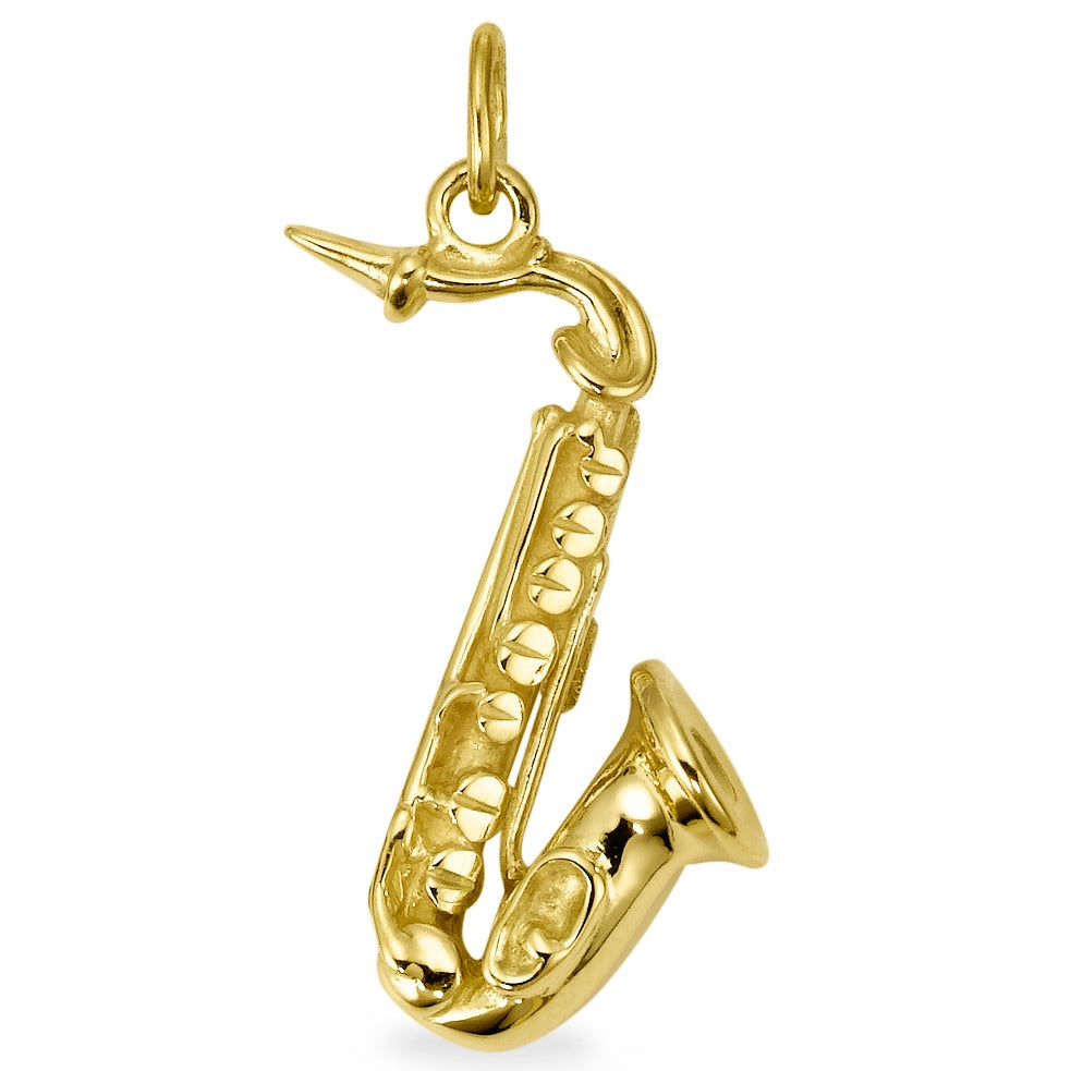 Stijlvolle heren hanger in 750 geelgoud, ontworpen als een gedetailleerd saxofoon. Perfect voor muziekliefhebbers die hun passie subtiel willen uitstralen. Dit hoogwaardige gouden sieraad combineert elegantie met een unieke uitstraling. Een tijdloos accessoire voor elke gelegenheid.
