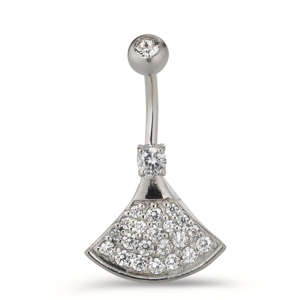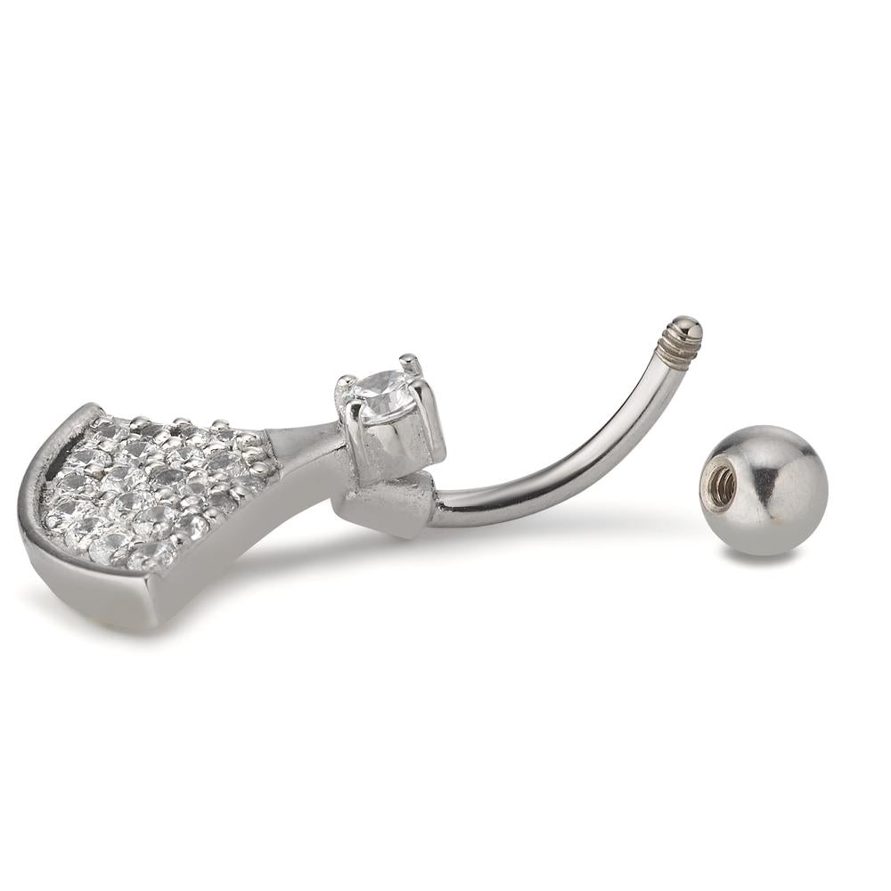 Navelpiercing Roestvrijstaal Zirkonia wit, 23 Steen