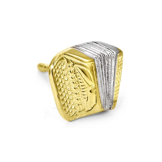 Stijlvolle herenoorbel van 750 geelgoud, ontworpen als een handorgel. Een uniek en muzikaal sieraad dat perfect is voor mannen die een bijzondere touch aan hun look willen toevoegen. Eén enkele oorstecker voor een subtiele, maar opvallende uitstraling.