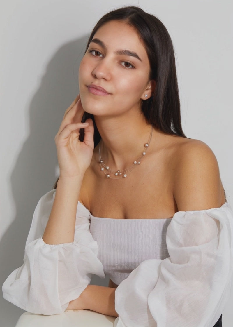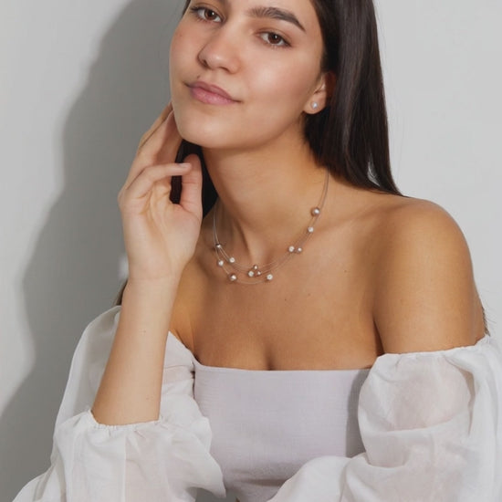 Oorknoppen Roestvrijstaal Mossel Parel wit, 2 Parels, 6 mm Ø6 mm