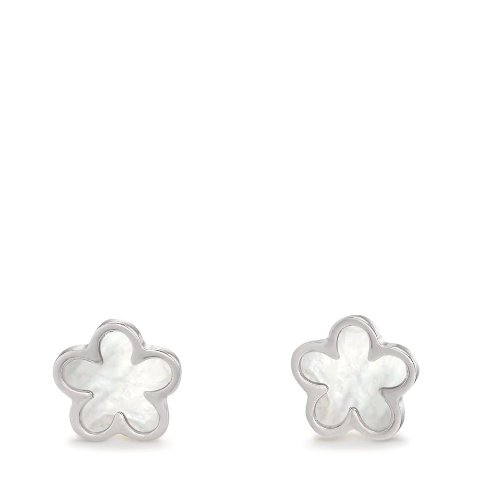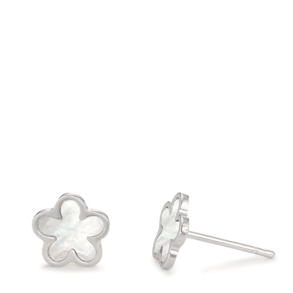 Oorknoppen Zilver Gerhodineerd Parelmoer Bloem Ø8 mm