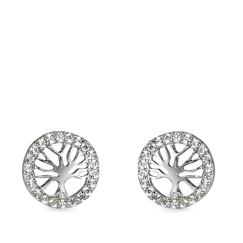 Oorknoppen Zilver Zirkonia Boom van leven Ø11 mm