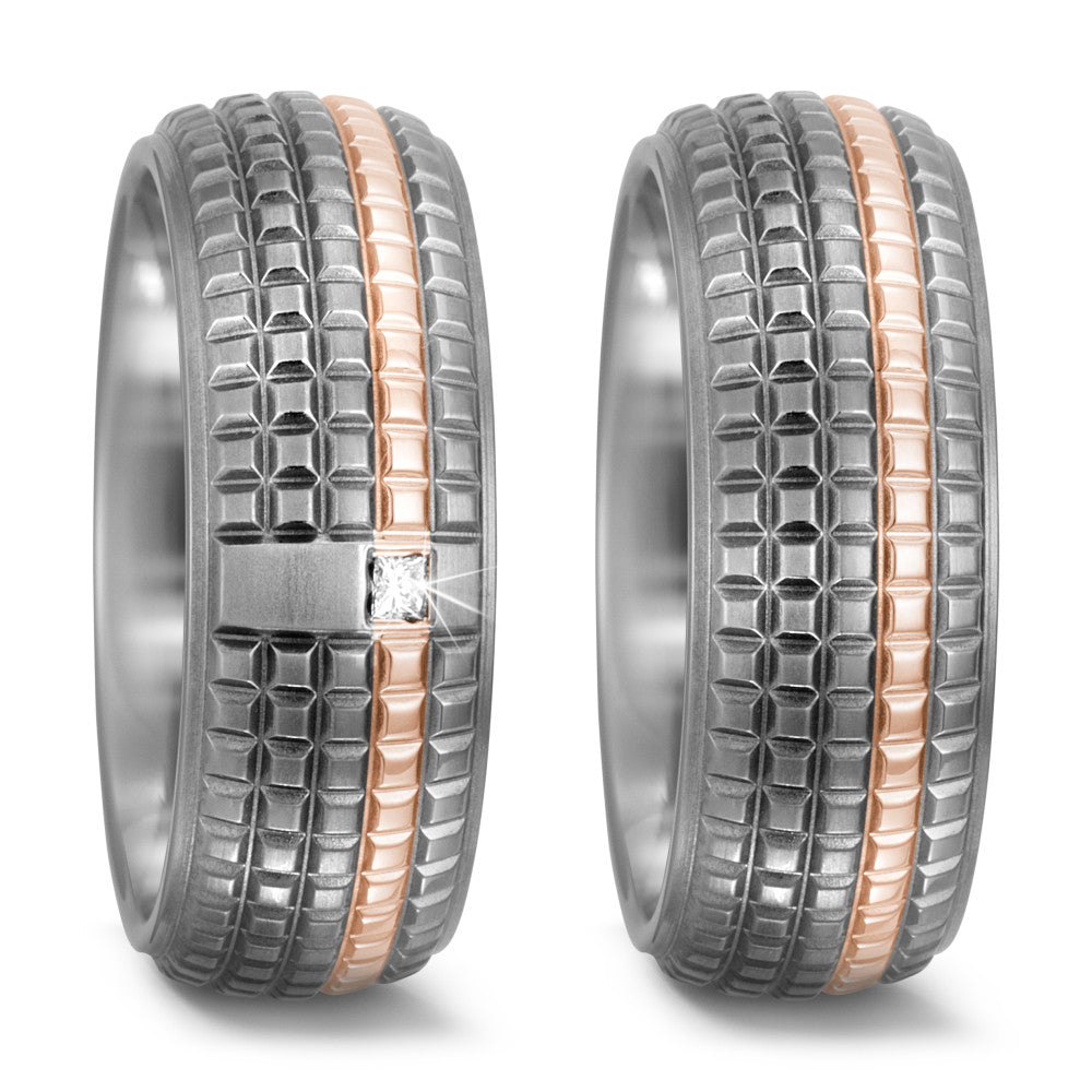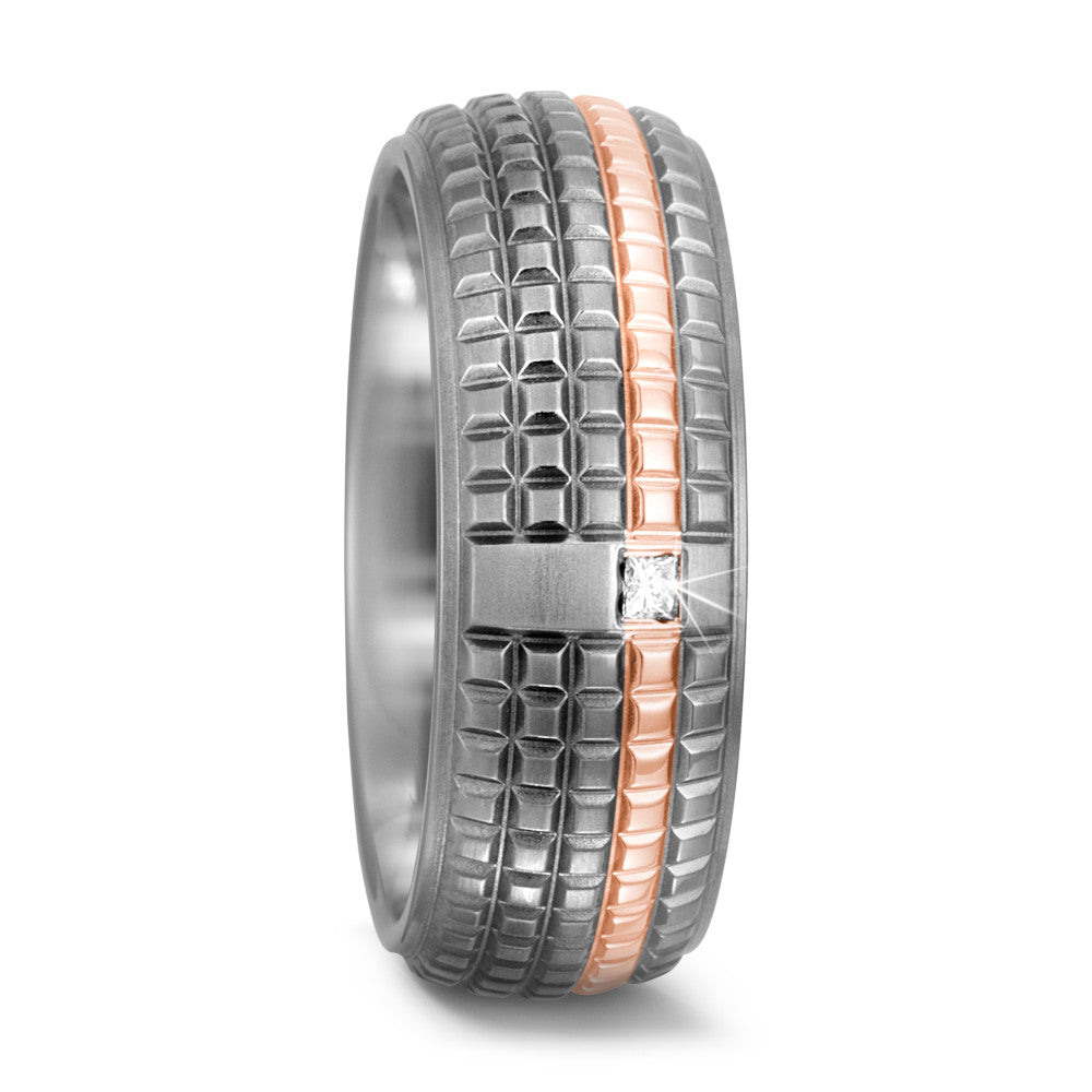 Partnerring Titanium, 750/18K rood goud Diamant 0.025 ct, [Carrée], w-si