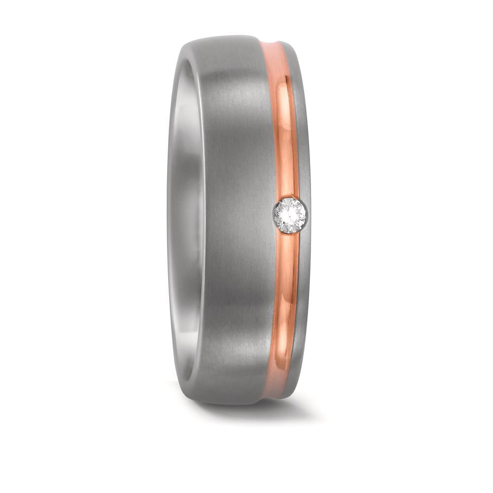 Partnerring Titanium, 750/18K rood goud Diamant 0.03 ct, w-si