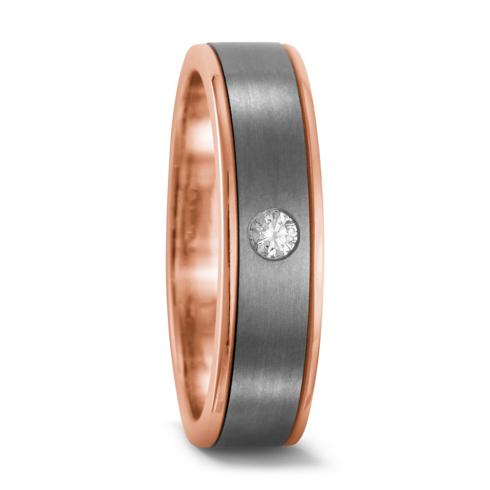 Partnerring Titanium, 750/18K rood goud Diamant 0.05 ct, w-si