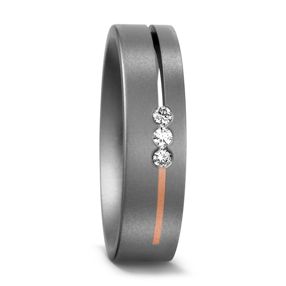 Partnerring Titanium, 750/18K rood goud Diamant 0.06 ct, 3 Steen, w-si