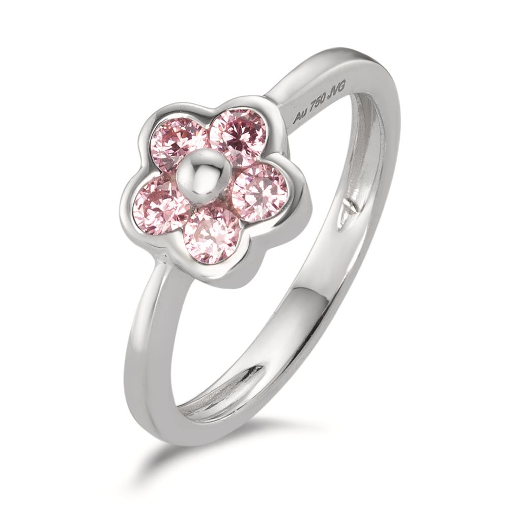 Ring 750/18K witgoud Zirkonia roze, 5 Steen Bloem