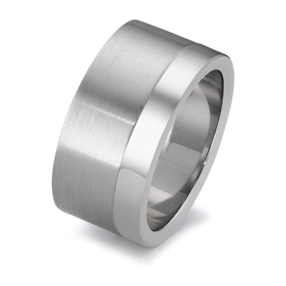 Stoere herenring van hoogwaardig roestvrij staal. De ring heeft een modern design met een matte afwerking gecombineerd met een gladde, glanzende rand. Duurzaam en comfortabel te dragen, ideaal voor dagelijks gebruik of als stijlvol accessoire. Verkrijgbaar in diverse maten.