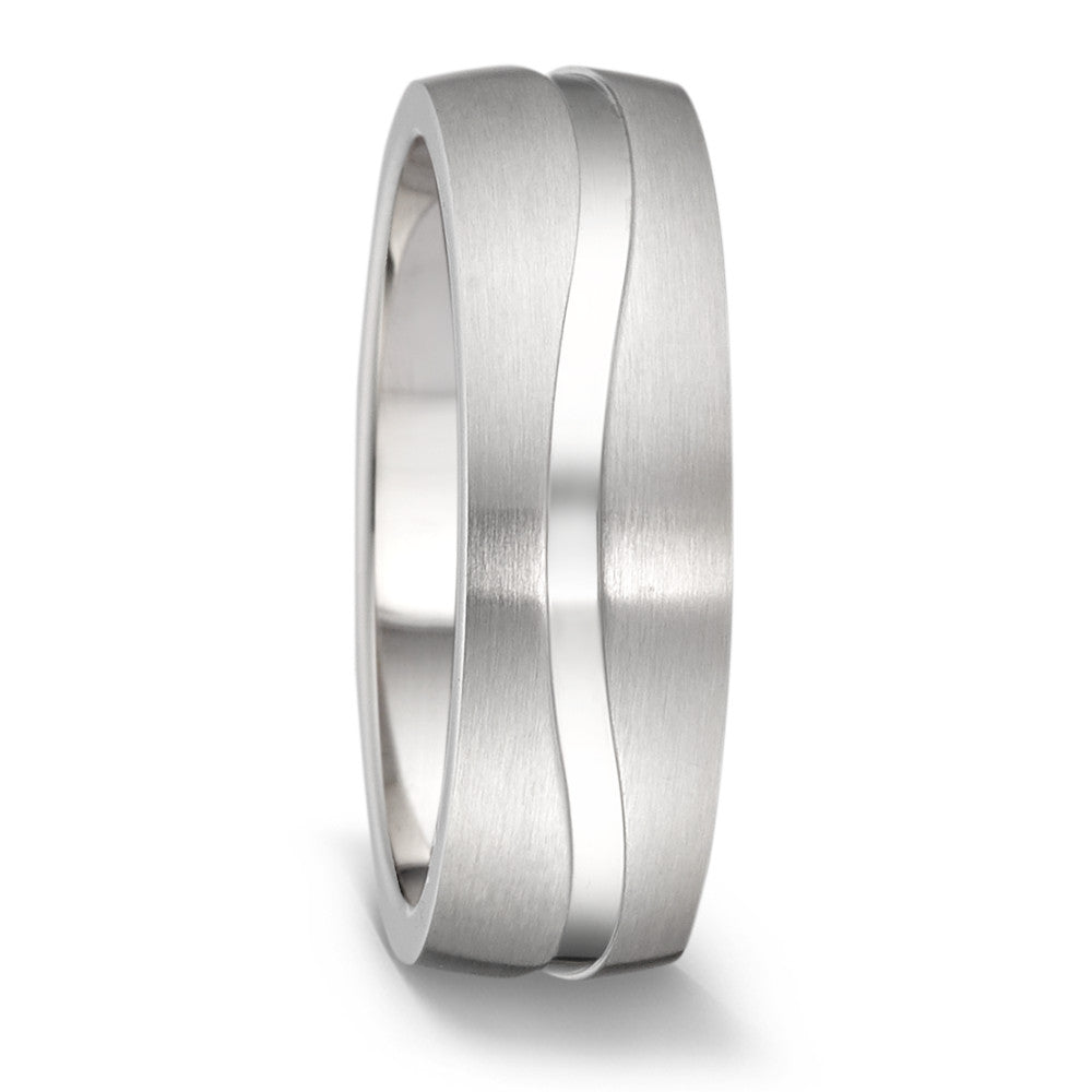 Stoere en moderne vinger ring gemaakt van hoogwaardig roestvrij staal. Met een matte afwerking en een subtiele golvende glanzende lijn, een perfect sieraad voor dagelijks gebruik dat kracht en stijl uitstraalt. Duurzaam en huidvriendelijk.