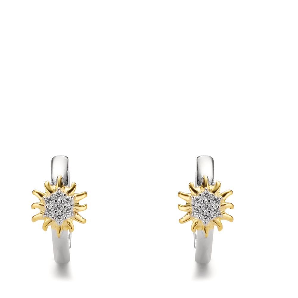Scharnier oorringen creolen Zilver Zirkonia Geel Gerhodineerd Edelweiss