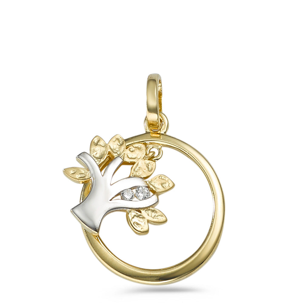 Anhänger 375/9 K Gelbgold, 375/9 K Weissgold Zirkonia 2 Steine Lebensbaum Ø17 mm