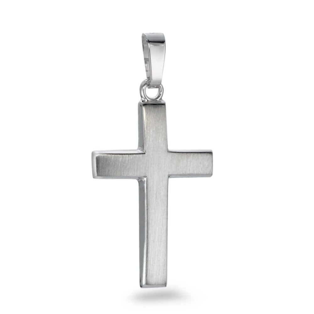 Edler Kreuzanhänger aus 375er Weißgold mit matter Oberfläche. Schlichtes und zeitloses Design, perfekt für jeden Anlass. Der Schmuckanhänger eignet sich wunderbar als persönliches Geschenk oder als stilvolles Accessoire für den Alltag. Hochwertige Verarbeitung garantiert.