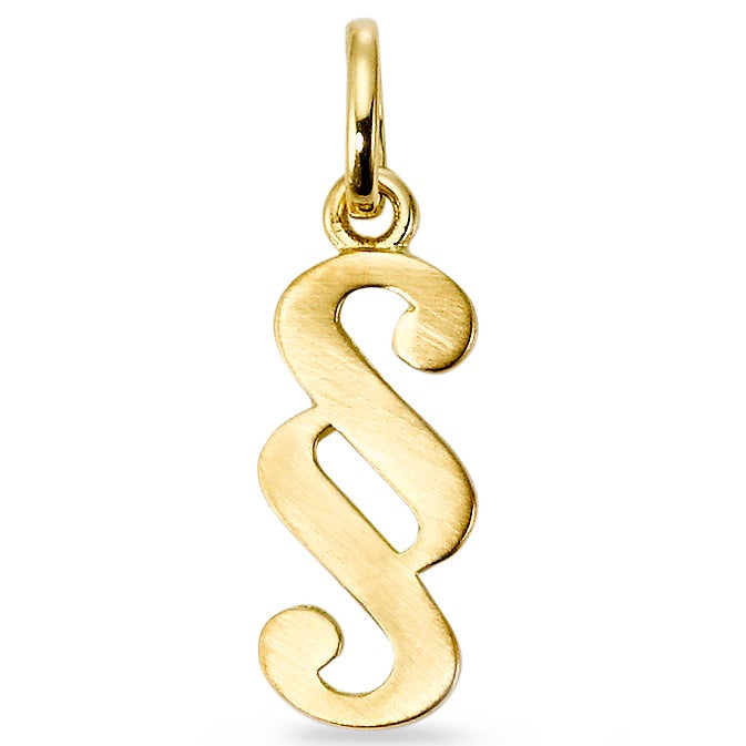 Eleganter Anhänger aus hochwertigem 750er Gelbgold in Form eines Paragraphenzeichens. Perfektes Accessoire für Juristen, Rechtsbegeisterte oder als individuelles Geschenk. Fein gearbeitet, zeitloses Design – ein stilvolles Symbol für Recht und Ordnung.