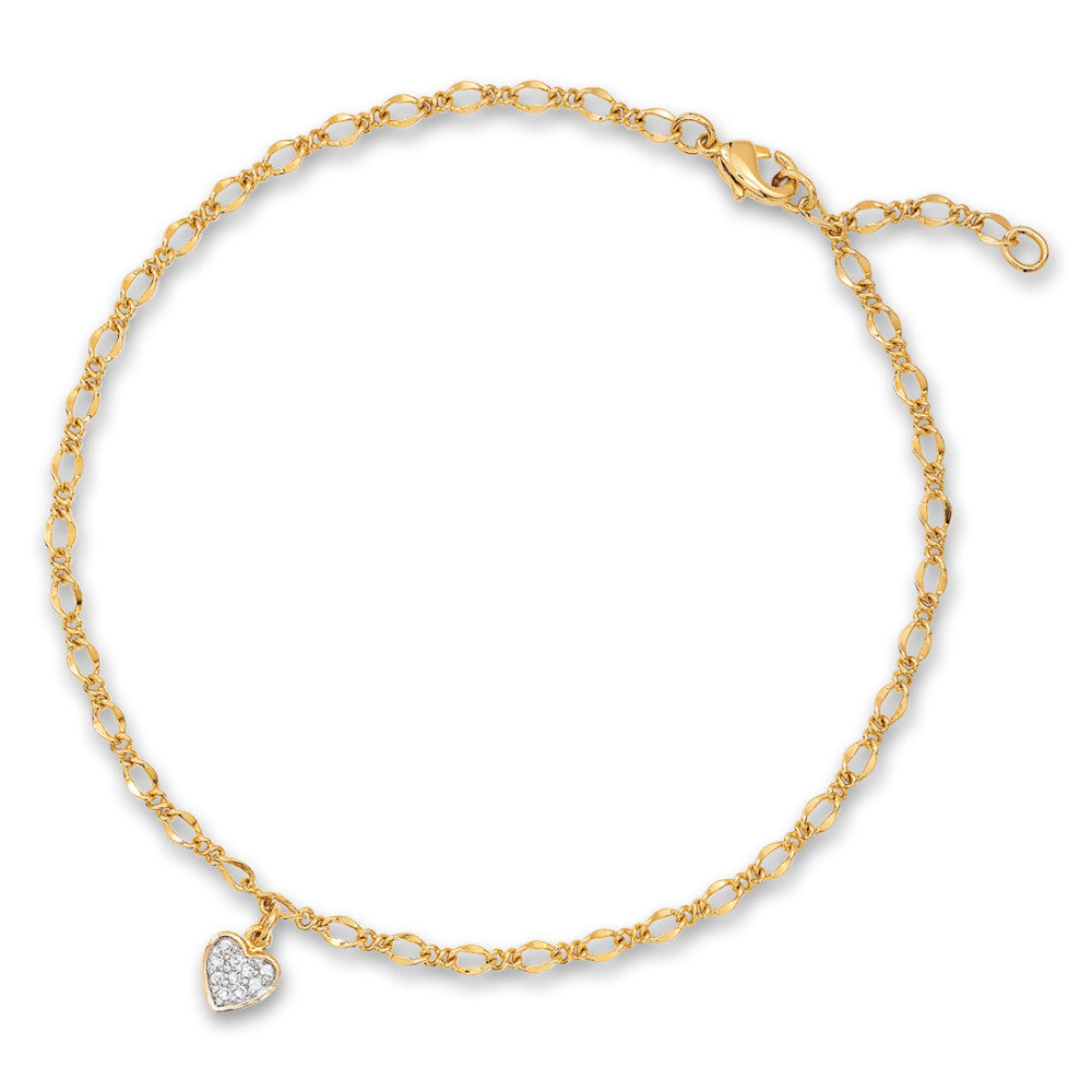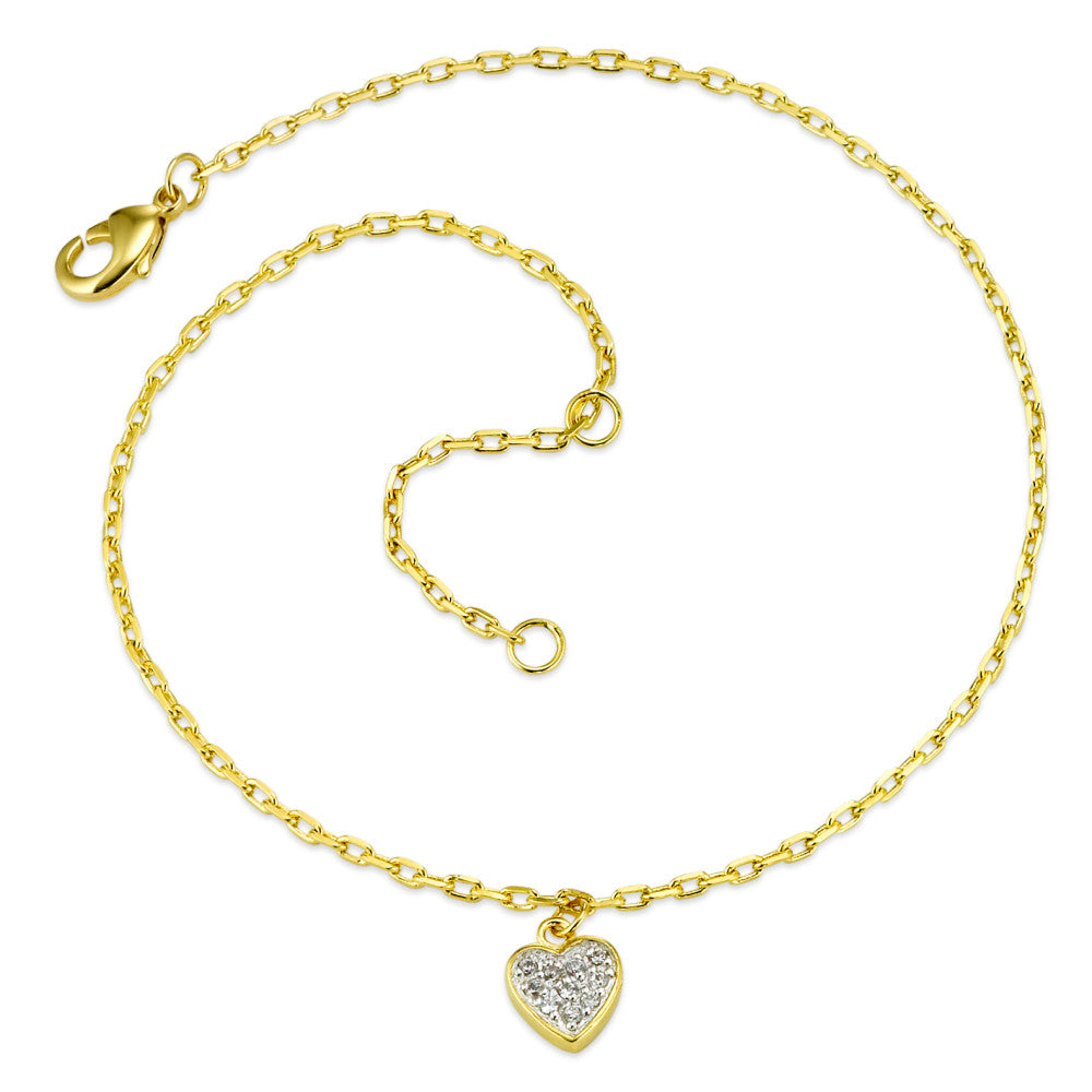 Elegantes Damen Fußkettchen aus hochwertiger Bronze mit goldfarbener Beschichtung. Der Anhänger in Herzform ist mit funkelnden Zirkonia-Steinen besetzt und verleiht dem Schmuckstück einen romantischen Glanz. Ein perfektes Accessoire für jeden Anlass.