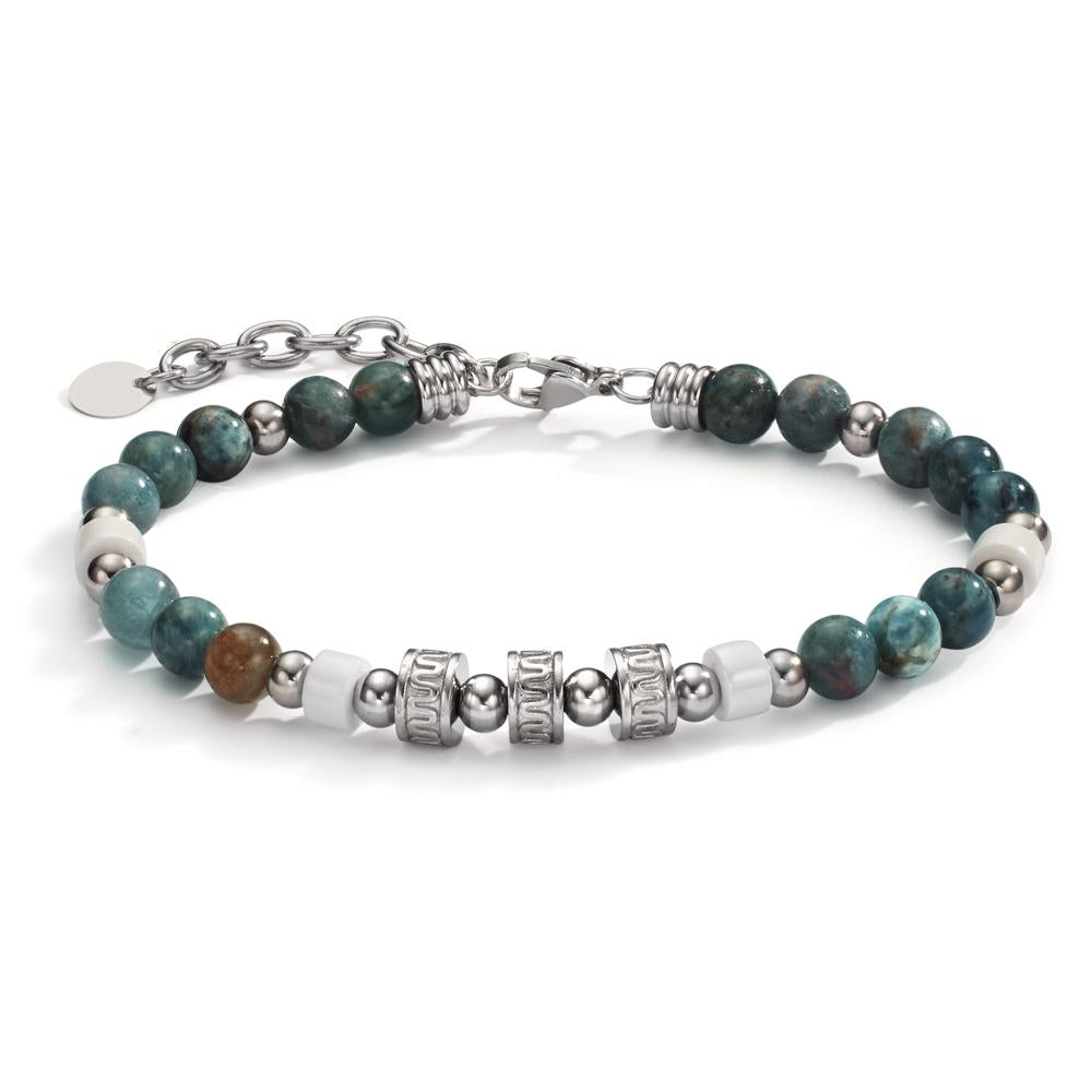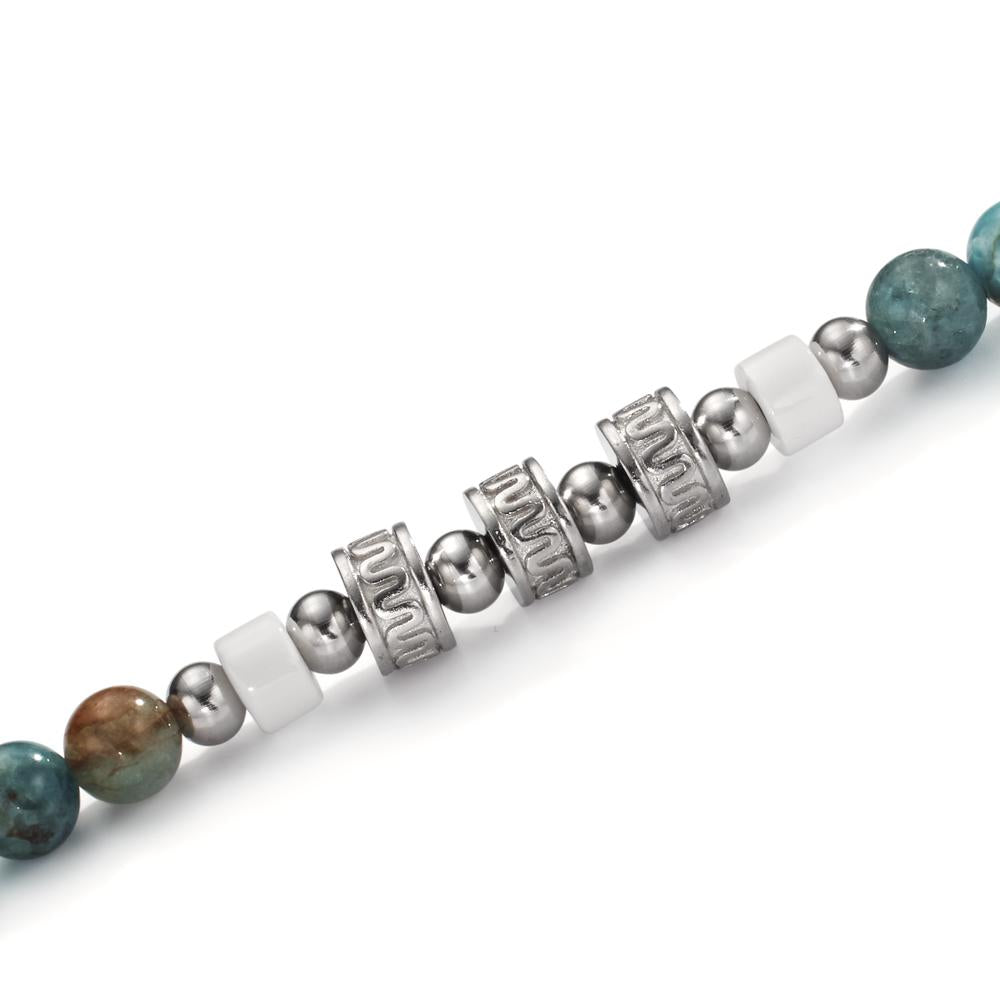 Dieses Herrenarmband kombiniert edlen Edelstahl mit stilvollen Keramik-Elementen und natürlichen Achat-Perlen in Blau- und Grüntönen. Ein maskulines Accessoire, das jedem Outfit eine besondere Note verleiht. Robust, elegant und perfekt für den Alltag oder besondere Anlässe.