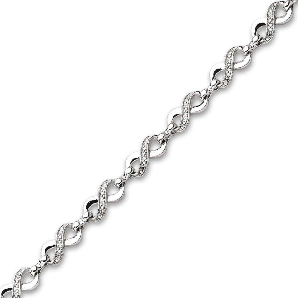 Elegantes Damen-Armband aus hochwertigem Silber, verziert mit funkelnden Zirkonia-Steinen. Das filigrane Design mit geschwungenen Elementen unterstreicht stilvoll jeden Look – perfekt für besondere Anlässe oder den Alltag. Ein zeitloses Schmuckstück voller Strahlkraft.