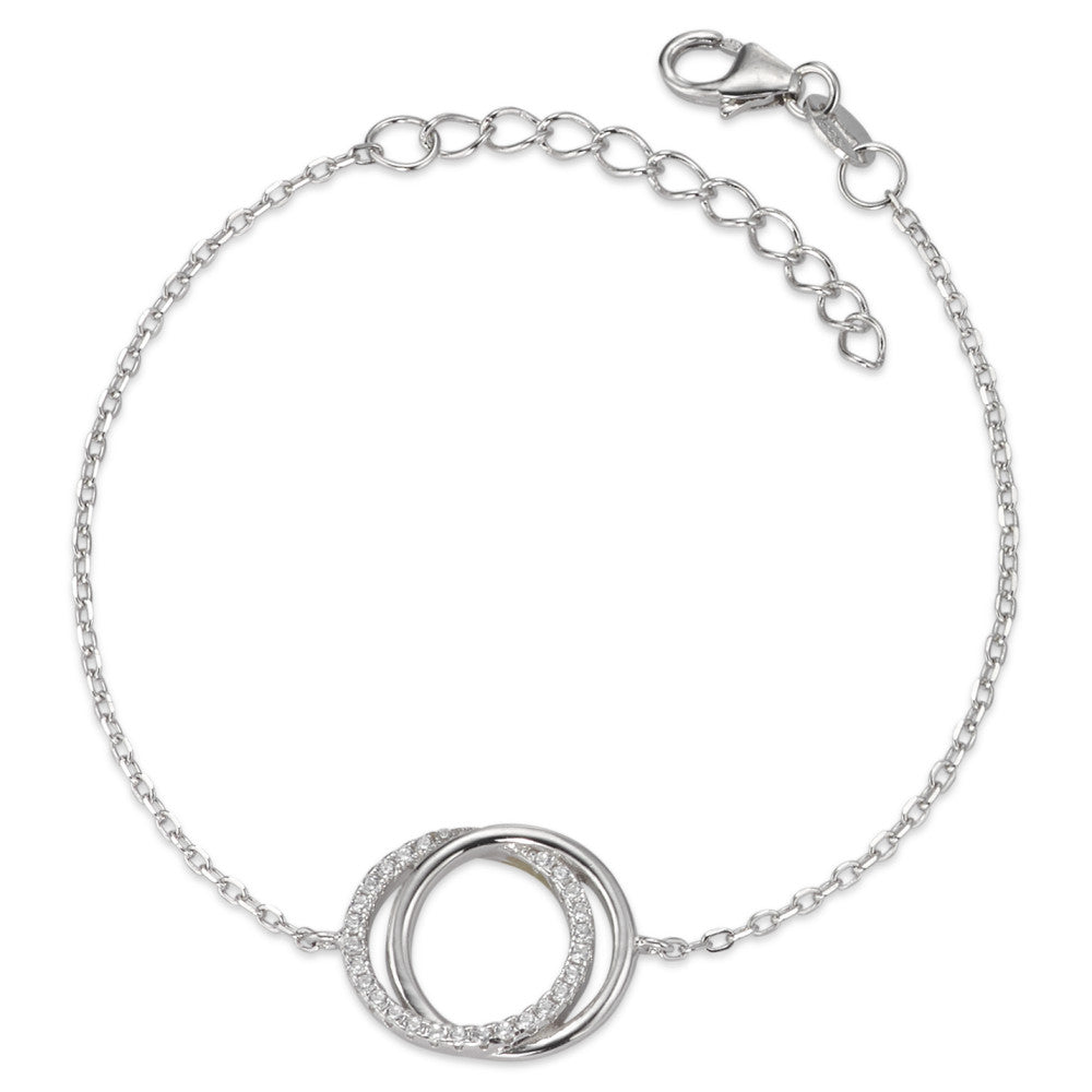 Elegantes Damenarmband aus hochwertigem Silber, verziert mit funkelnden Zirkonia-Steinen. Das feine Design mit zwei ineinander verschlungenen Kreisen macht es zum perfekten Accessoire für jeden Anlass. Verstellbare Länge für optimalen Tragekomfort.