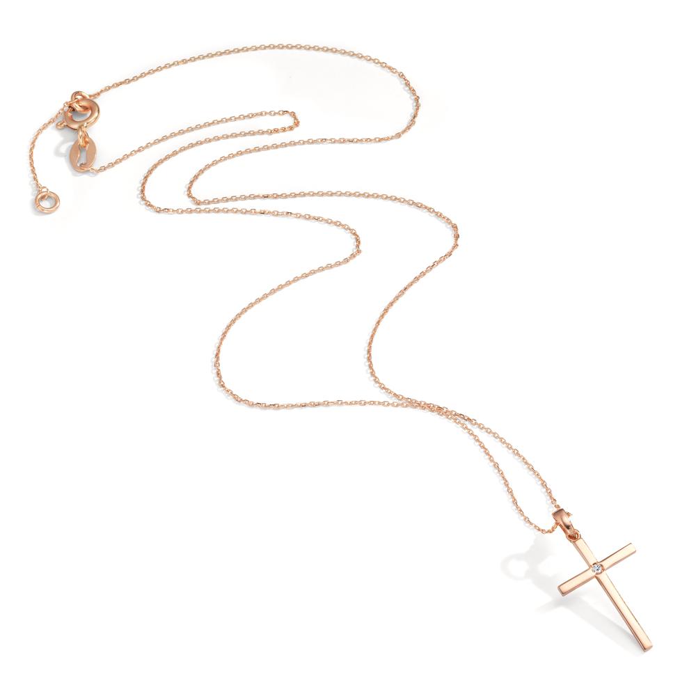 Collier 750/18 K Rotgold Diamant 0.01 ct, w-si Kreuz 40-42 cm verstellbar