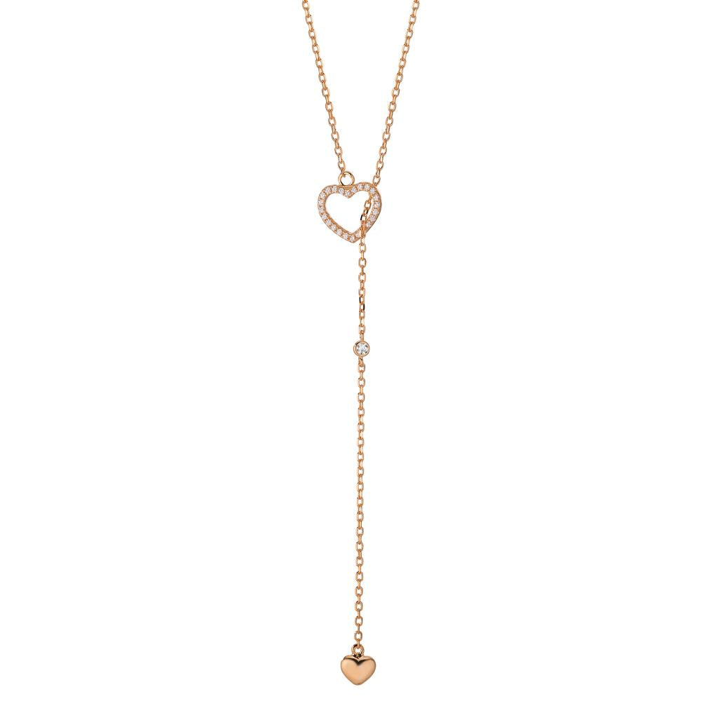 Collier Silber Zirkonia rosé vergoldet Herz 40-45 cm verstellbar