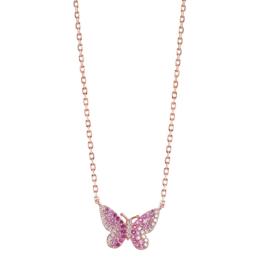 Collier Silber Zirkonia rosé vergoldet Schmetterling 40-45 cm verstellbar