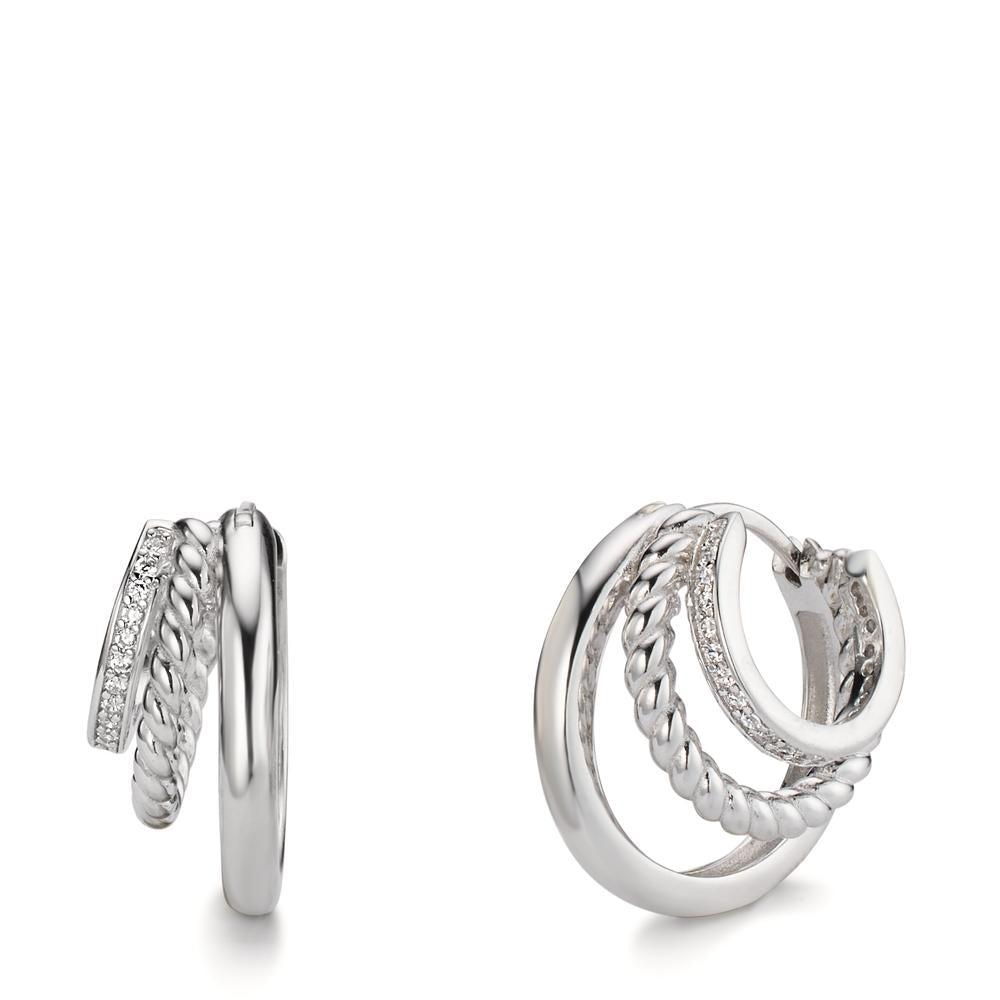 Elegante Damen-Creolen aus glänzendem Silber, verziert mit funkelnden Zirkonia-Steinen. Das dreireihige Design mit unterschiedlichen Strukturen sorgt für einen modernen Look und setzt stilvolle Akzente bei jedem Outfit. Perfekt für besondere Anlässe oder den Alltag.