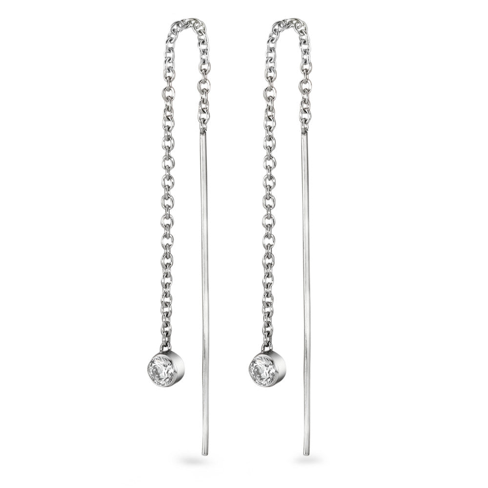 Durchziehohrhänger Edelstahl Zirkonia 2 Steine 10 cm
