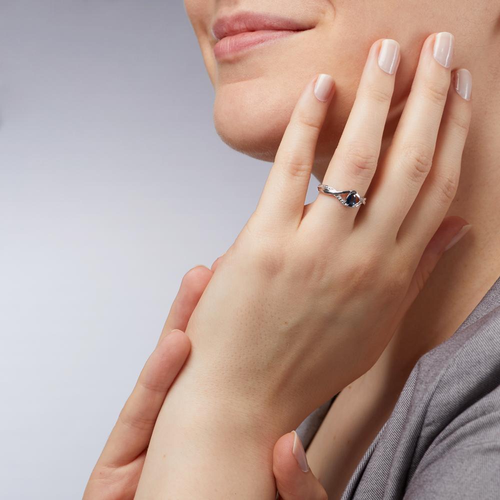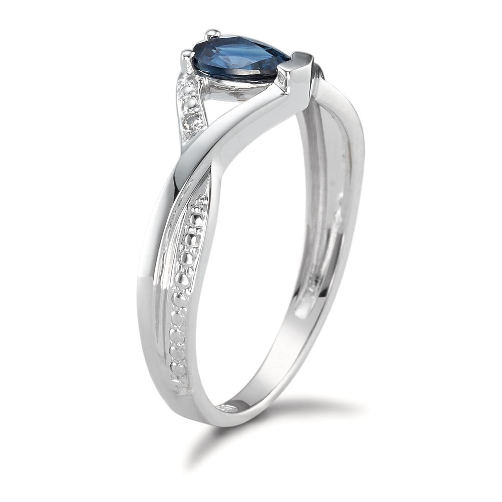 Fingerring 750/18 K Weissgold Saphir blau, Tropfen, Diamant 0.01 ct, 2 Steine