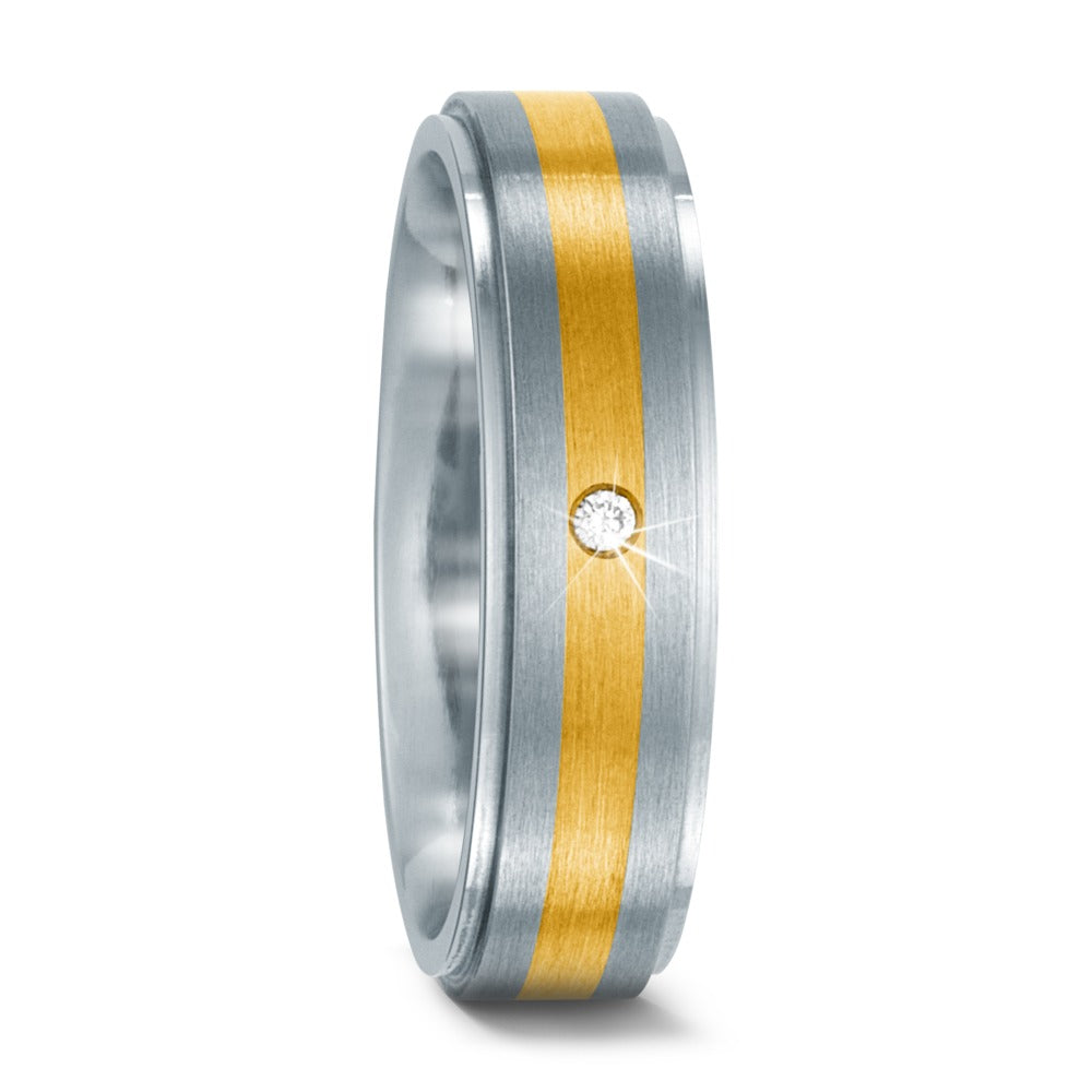 Fingerring Edelstahl, 750/18 K Gelbgold Diamanten 0.015 ct, w-si