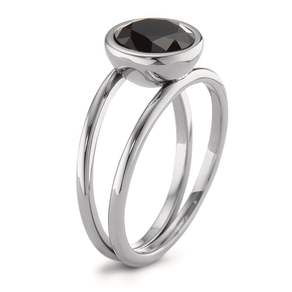 Fingerring Edelstahl Zirkonia schwarz Ø9.5 mm