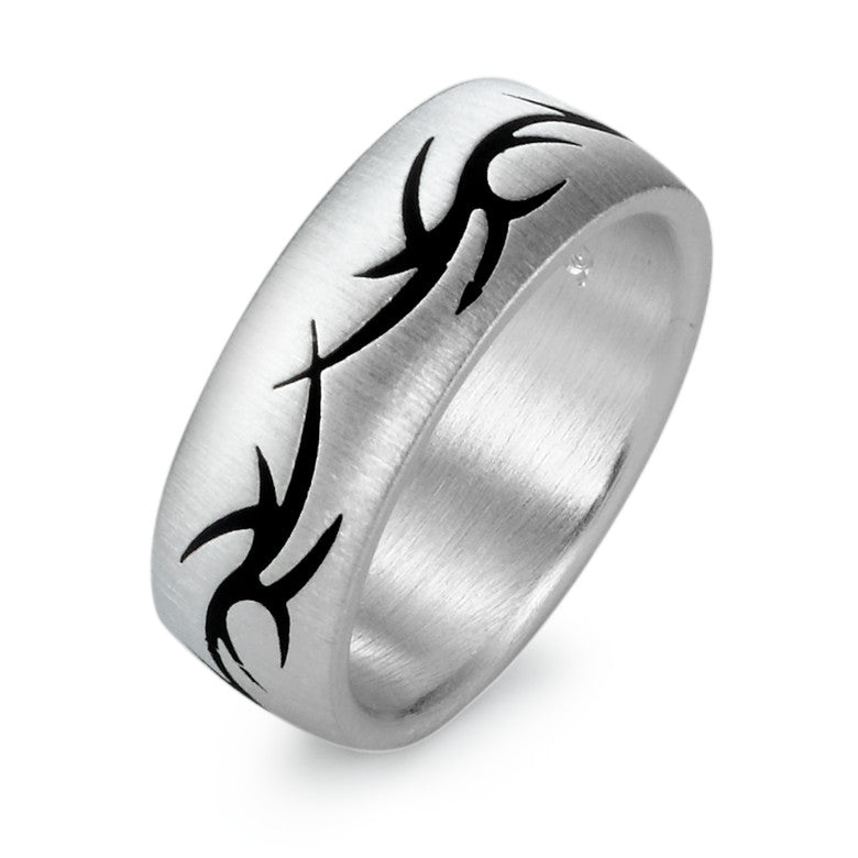 Moderner Herren Fingerring aus hochwertigem Silber mit markantem Tribal-Design. Das matte Finish und die schwarzen Gravuren verleihen dem Ring einen kraftvollen, maskulinen Look. Ideal für den Alltag oder als stylisches Accessoire für besondere Anlässe. Robust und zeitlos.