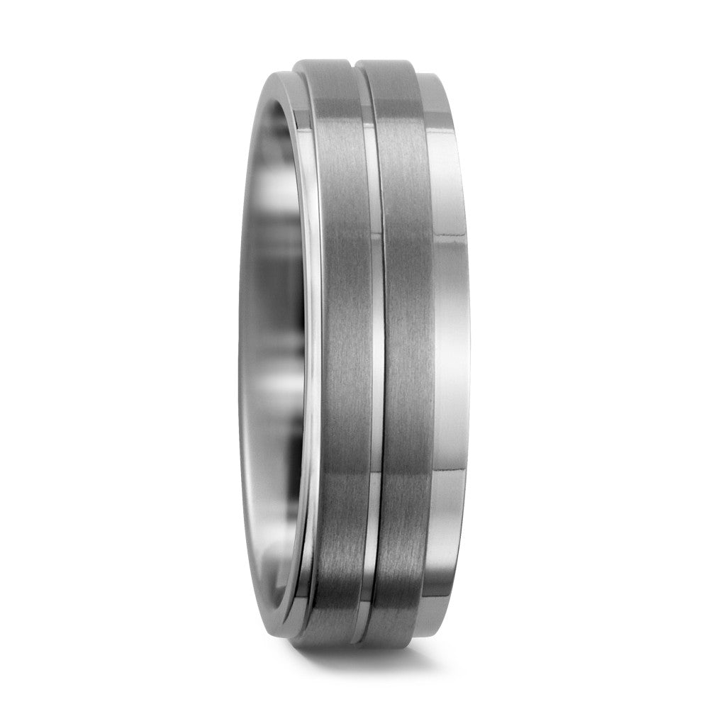 Moderner Fingerring aus hochwertigem Titan, der durch seine Kombination aus mattierten und polierten Oberflächen besticht. Der Ring ist besonders leicht, robust und hautfreundlich – perfekt für den Alltag oder als stilvolles Accessoire. Ein zeitlos elegantes Schmuckstück.