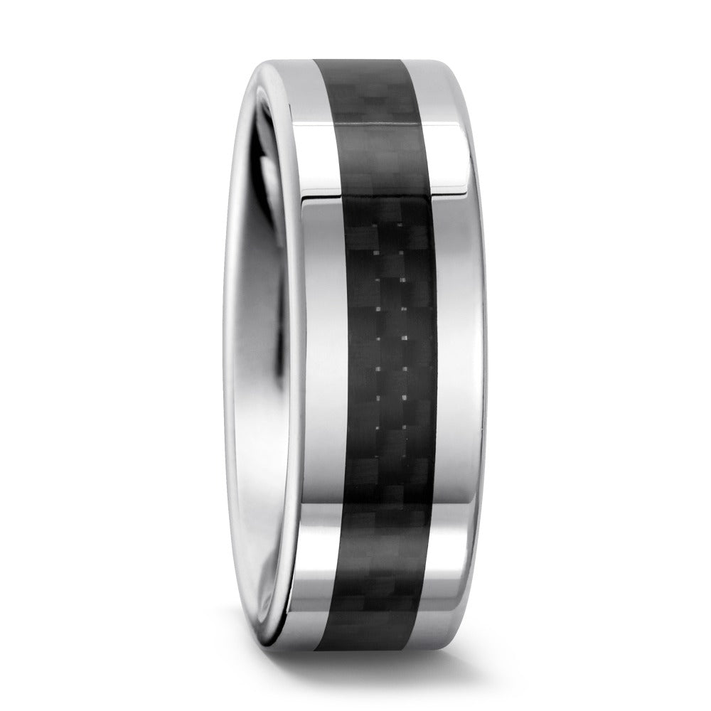 Moderner Herren Fingerring aus langlebigem Wolfram mit edler Carbon-Einlage. Die Kombination verleiht dem Ring ein sportliches und zugleich elegantes Design. Ideal für den Alltag oder besondere Anlässe – robust, kratzfest und zeitlos stylisch.