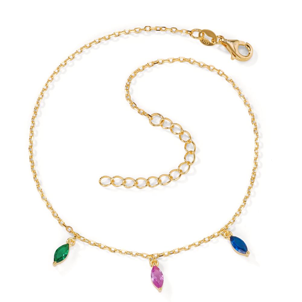 Fusskettchen Silber Zirkonia 3 Steine gelb vergoldet 23-27 cm verstellbar