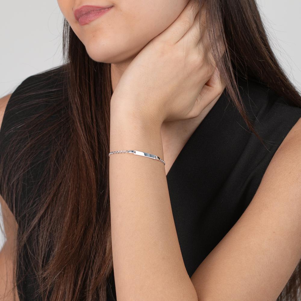Dieses elegante Silberarmband für Mädchen überzeugt durch schlichte Schönheit und hochwertige Verarbeitung. Die Gravurplatte bietet Platz für persönliche Botschaften, Namen oder Daten. Ein besonderer Begleiter für kleine und große Momente im Alltag.