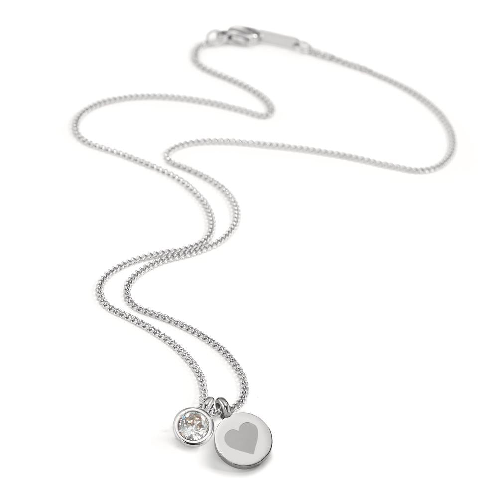 Elegantes Damen-Collier aus hochwertigem Edelstahl mit einem filigranen Herz-Anhänger und funkelndem Zirkonia-Stein. Zeitloses Design für jeden Anlass, das Stil und Leichtigkeit vereint. Perfekt als Geschenk oder zum Selbsttragen. Hypoallergen und langlebig.