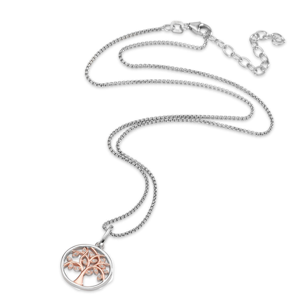 Halskette mit Anhänger Silber Zirkonia 14 Steine rosé vergoldet Lebensbaum 42-47 cm verstellbar Ø17 mm